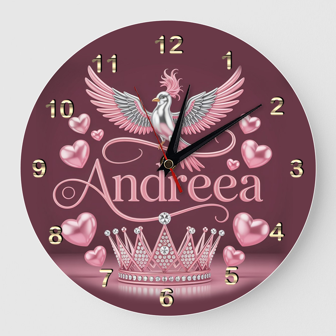 🕊️ Ceas cadou cu Nume Coronita Roz | Print UV + Mecanism Silențios 🙏
