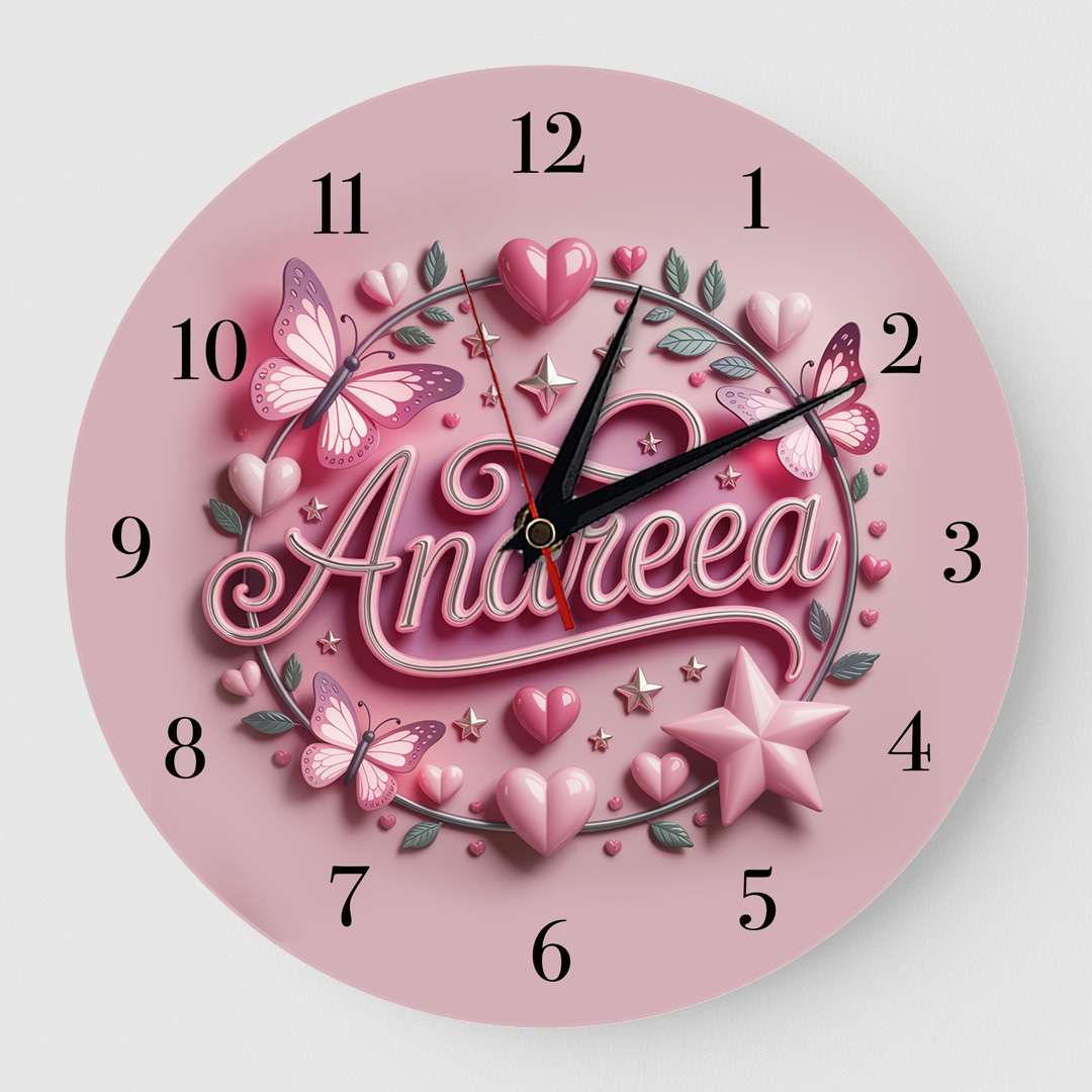 Transformă fiecare clipă într-un moment special cu acest Ceas cadou cu nume fluturi si inimi roz, un cadou delicat și elegant pentru fete sau femei dragi!