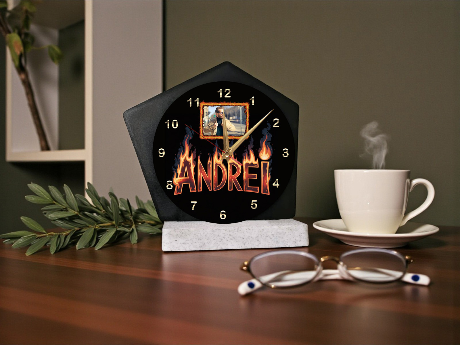 Adaugă un plus de eleganță și emoție spațiului tău cu acest ceas de birou unic