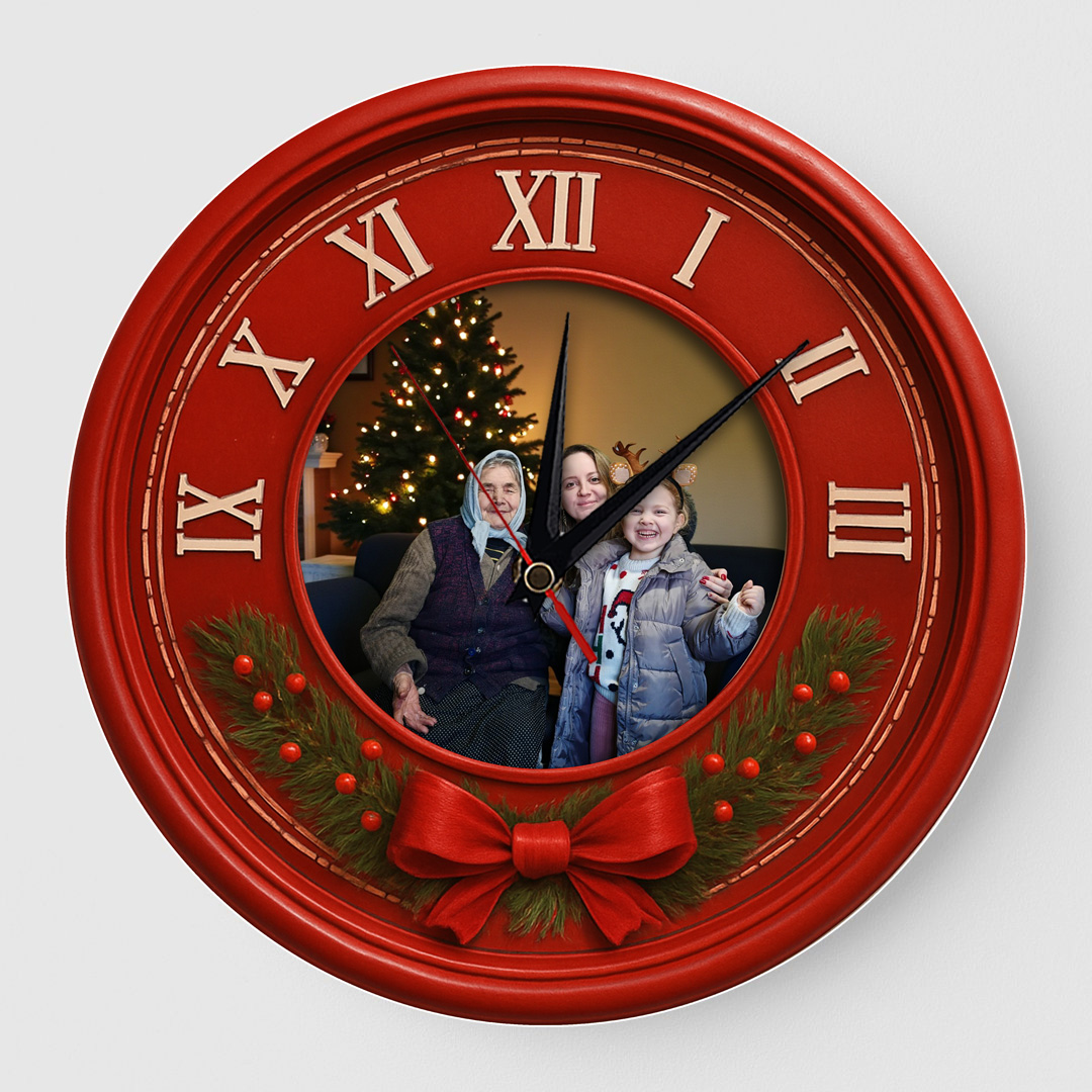 Transformă magia sărbătorilor într-o amintire de neuitat! Ceasul personalizat cu poză – Model Cadou Crăciun Roșu este alegerea ideală pentru a surprinde familia și prietenii cu un cadou unic, plin de emoție și spirit festiv. Fundalul roșu, elementele de Crăciun și spațiul dedicat fotografiei creează un decor spectaculos, perfect pentru orice locuință.
