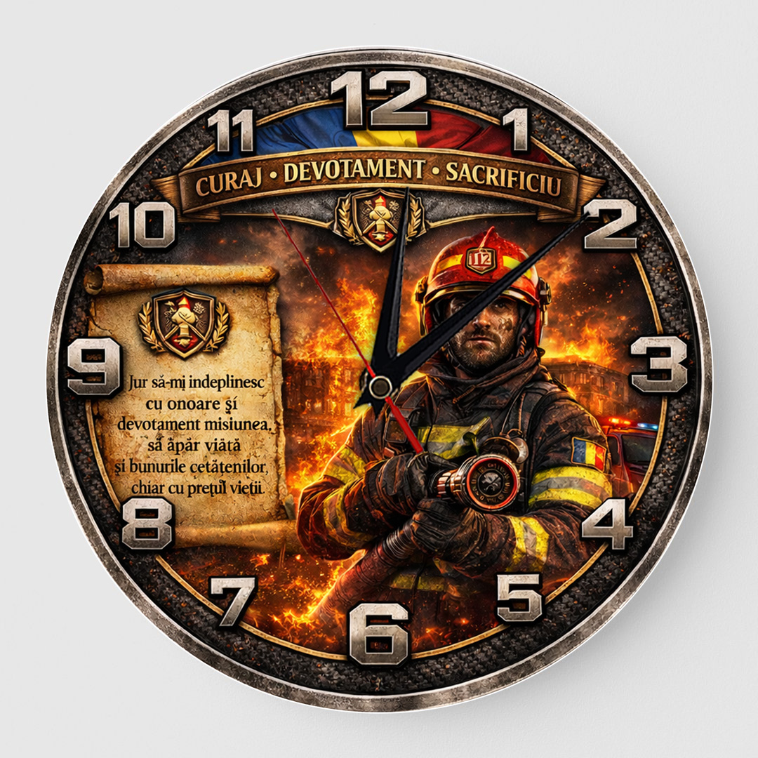 Acest ceas personalizat cu Jurământul Pompierului este mai mult decât un obiect decorativ – este o declarație de respect pentru o profesie în care fiecare secundă contează.